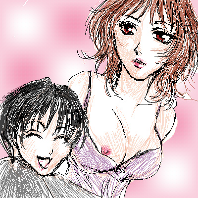 和ちゃんに抱きつかれてポロリした母の図(す、すいません)